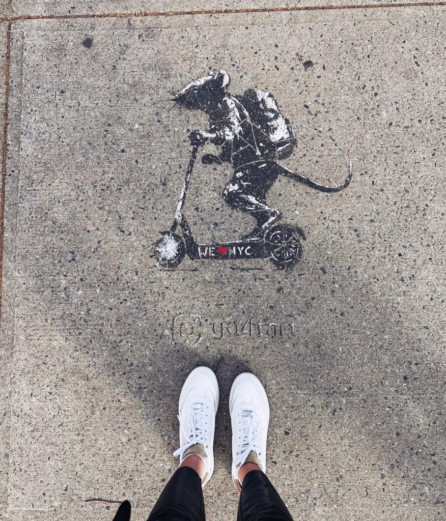Getting used to the big city life again, I wanted to share another of these charming sidewalk graffiti’s from GOAT (check out my first post about the artist here in case you missed it!), which captures the fast pace of the city in a cute way!