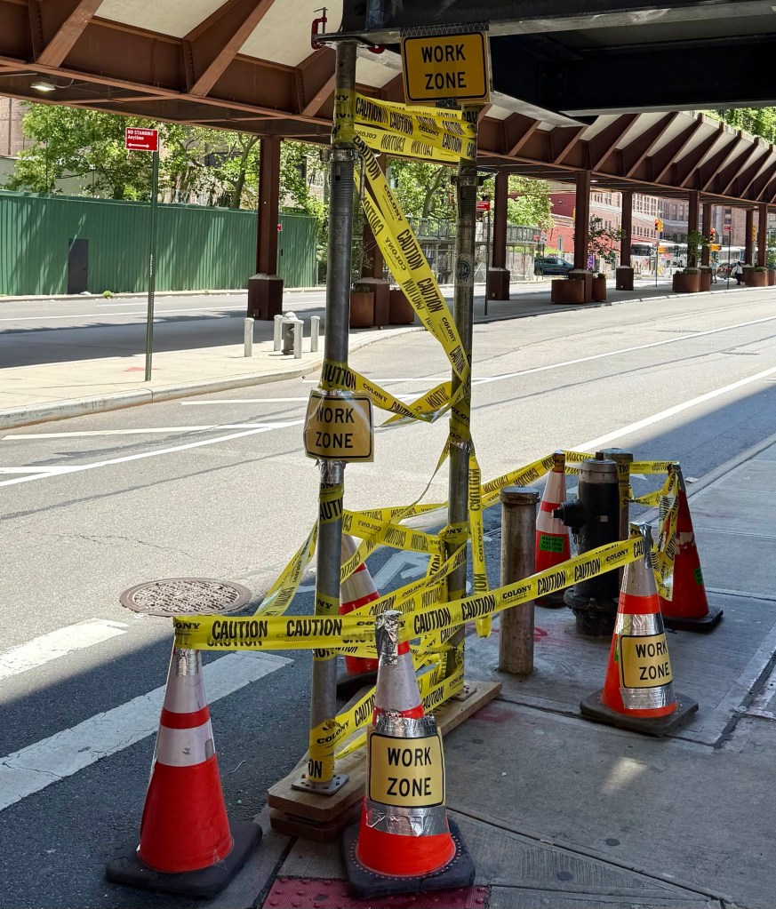 Caught the flu and am feeling like this tangled mess of cones and caution tape—just add tissues, tea, and ice (depending on which fever chills are in charge—hot or cold, it changes by the hour).